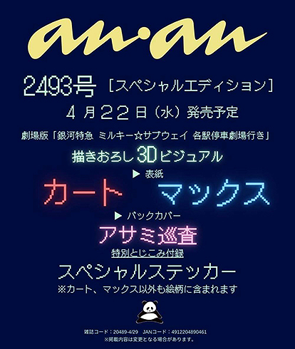 [本/雑誌]/anan (アンアン) 2026年4月29日号 No.2493増刊 スペシャルエディション 【表紙】 『銀河特急 ミルキー☆サブウェイ』カート&マックス/anan編