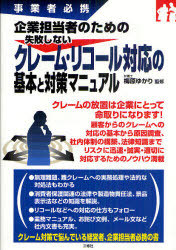 梅原ゆかり/監修/企業担当者のための失敗しないクレーム・リコール対応の基本と対策マニュアル 事業者必携、メディア:BOOK、発売日:2010/12、重量:340g、商品コード:NEOBK-903170、JANコード/ISBNコード:9784384043808
