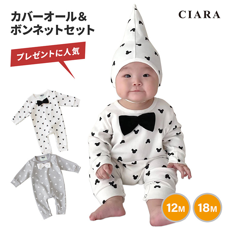 子供服 ディズニー カバーオール ボンネット セット 長袖 子供 子ども  男の子 女の子 キッズ ベビー 赤ちゃん ミッキー ギフト tdm ホワイトデー お返し