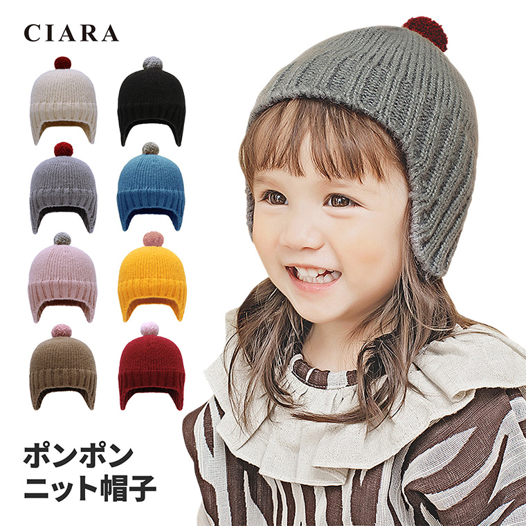 子供 帽子 本日 ポッキリ 冬 毛糸 ニット帽 おしゃれ キッズ 耳あて ポンポン 男 女 ニット キャップ 子ども ベビー 赤ちゃん ギフト tdm ホワイトデー