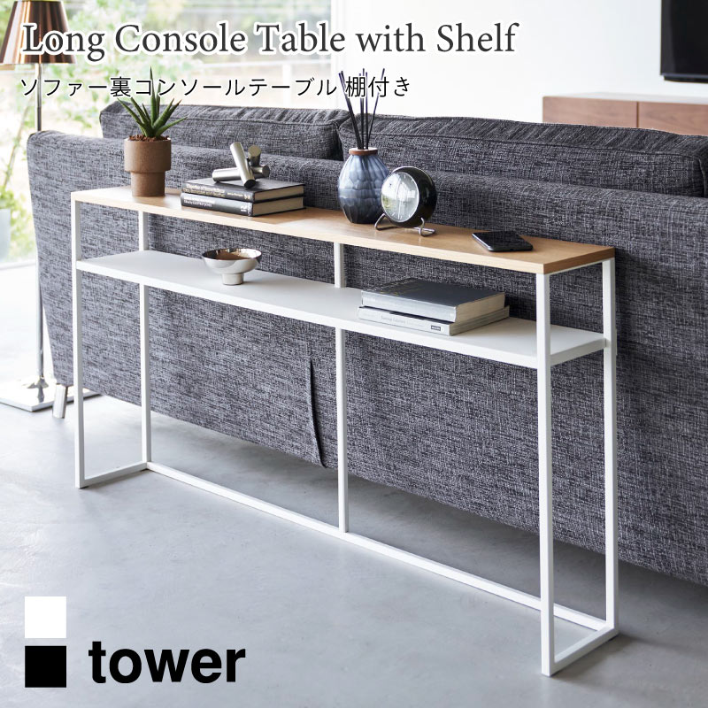 コンソールテーブル ソファー裏 テーブル タワー 棚付き オープンラック シンプル 飾り棚 山崎実業 tower ホワイト ブラック 2028 2029