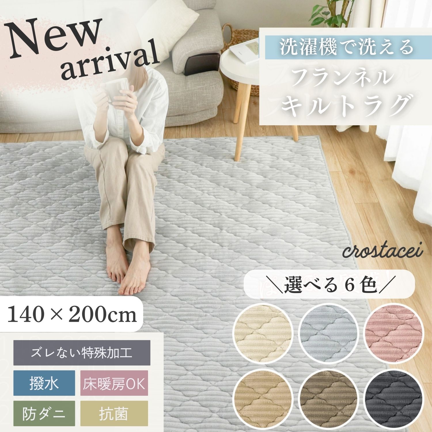 ラグ カーペット 韓国 洗える キルトラグ 140×200 滑り止め おしゃれ キルト 無地 春 夏 秋 冬 春用 北欧 オールシーズン crostacei クロスターチ