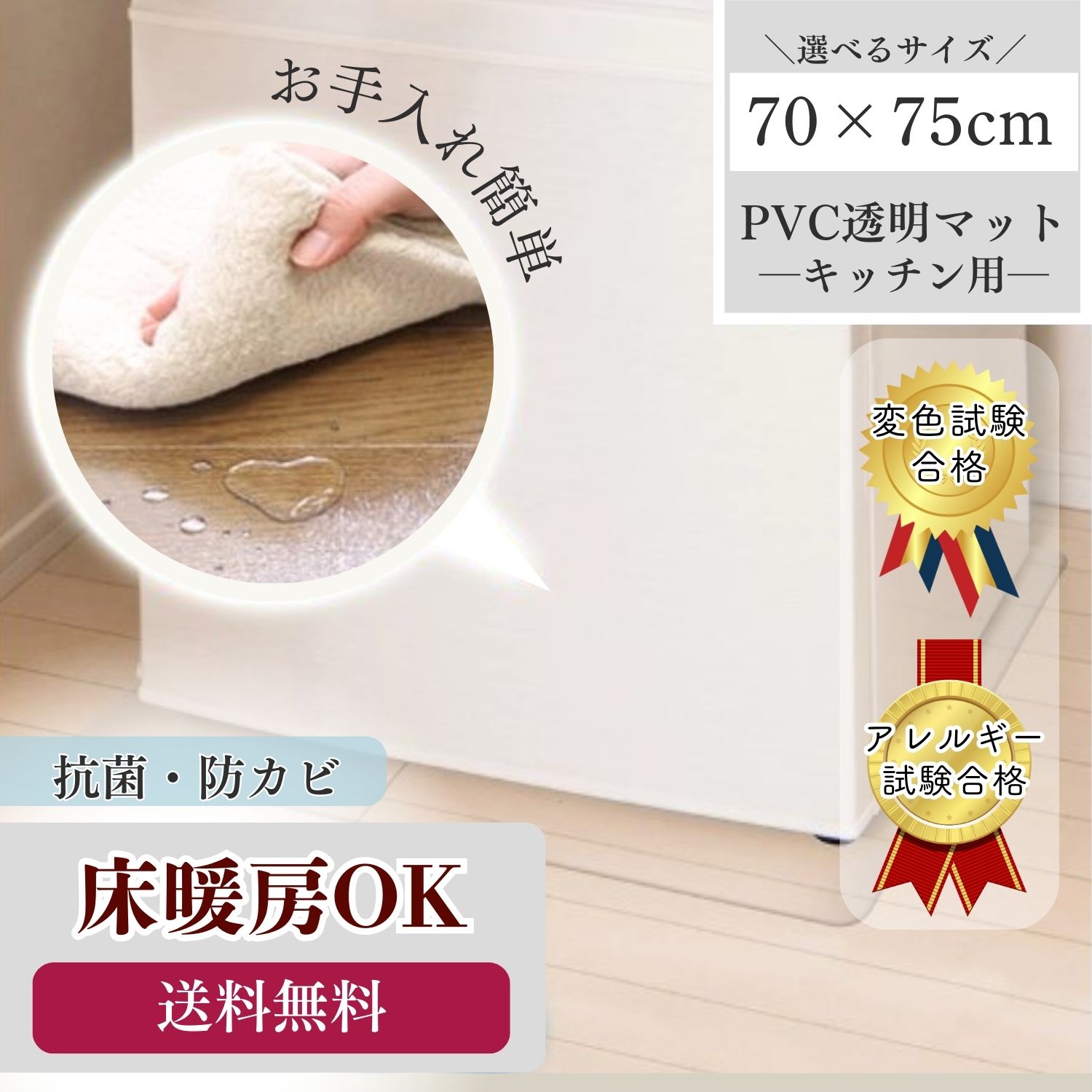 冷蔵庫マット 透明 Lサイズ 70×75cm 下敷き 600L 傷防止マット フローリング 床 キズ防止 凹み防止 床保護シート 厚1.5mm 保護 マット 撥水 クリア PVC
