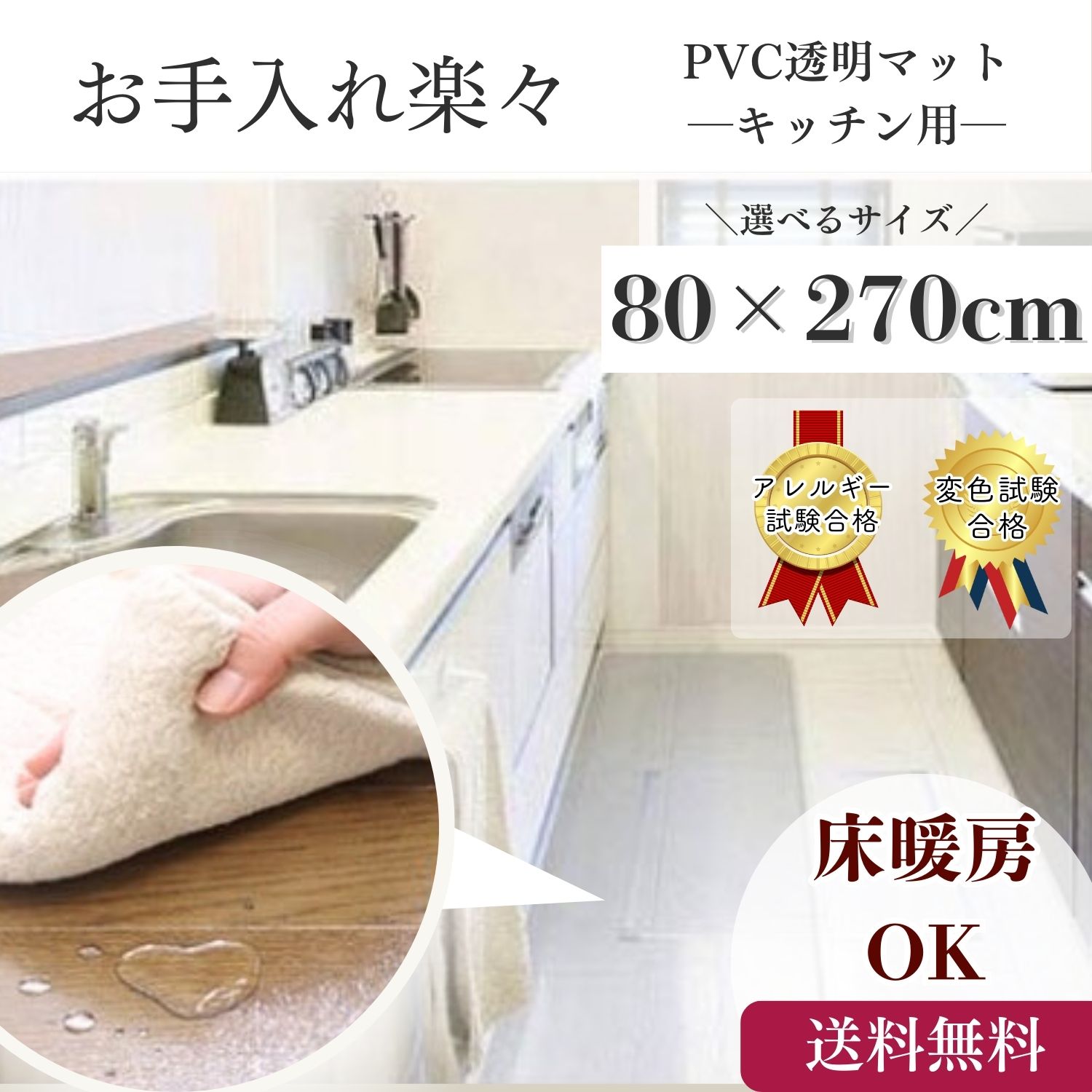 キッチンマット 透明 クリア 80×270cm 拭ける 抗菌 防臭 厚1.5mm おしゃれ 270cm 撥水 水拭き PVC ビニール 水拭き 台所 ウォッシャブル 手洗い可能 速乾 防汚 撥水 はつ油 床暖房対応 遊び毛防止 フリーカット