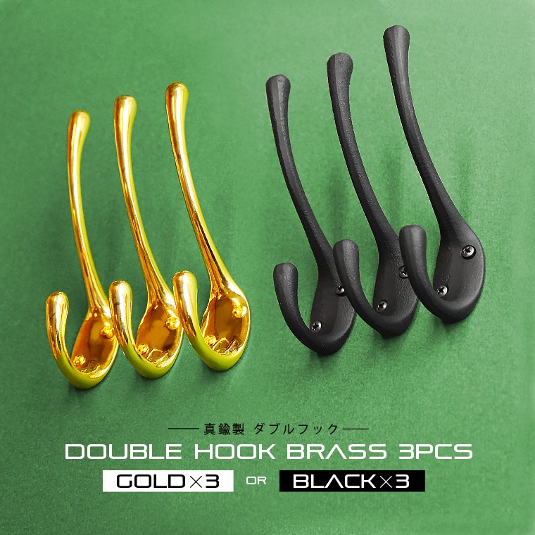 【単品】真鍮ダブルフック| 商品名 | ダブルフックブラス 3個セット Double Hook Brass |