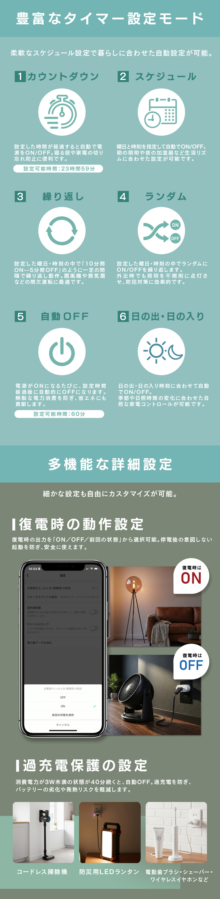 ※↓必ずご確認ください↓※スマートプラグは、電源がON状態でコンセントを抜き、再度差し込むと電源がONになる家電が対象です。