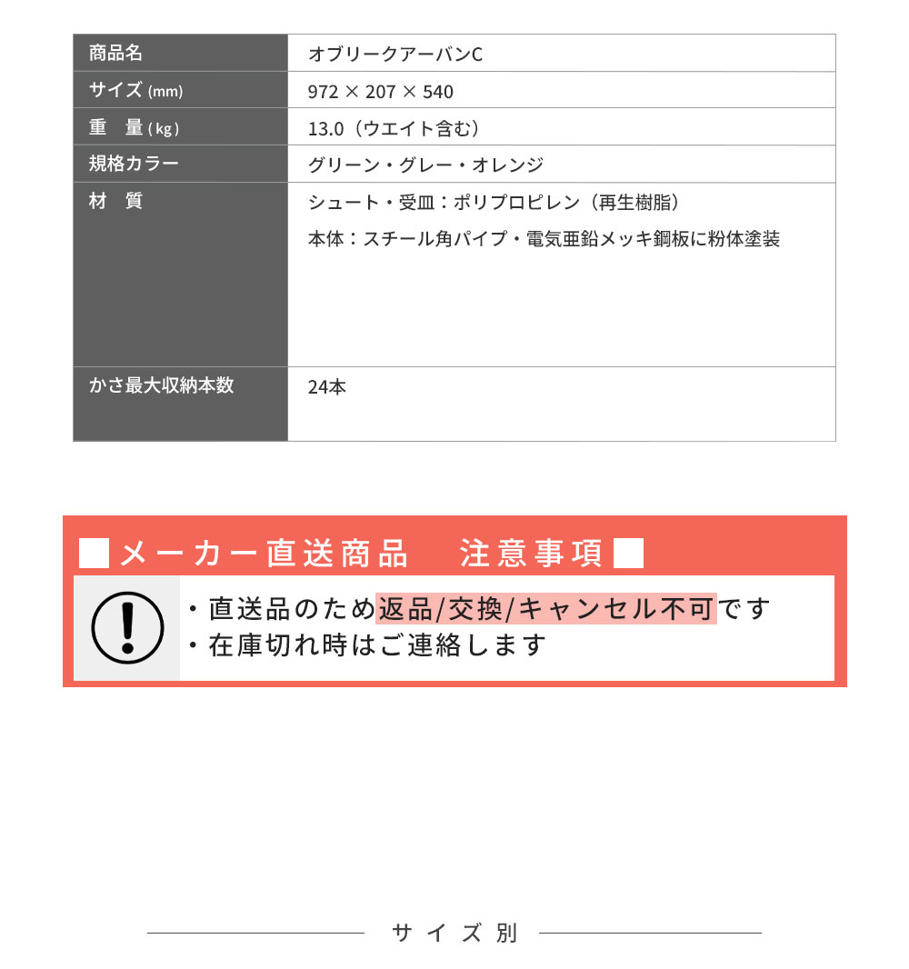 オブリークアーバンC C24 24本立て 2台セット 前面パネル付き シュート式 傘立て 長傘 対応 雨 便利グッズ テラモト 個人宛配送不可 返品交換不可