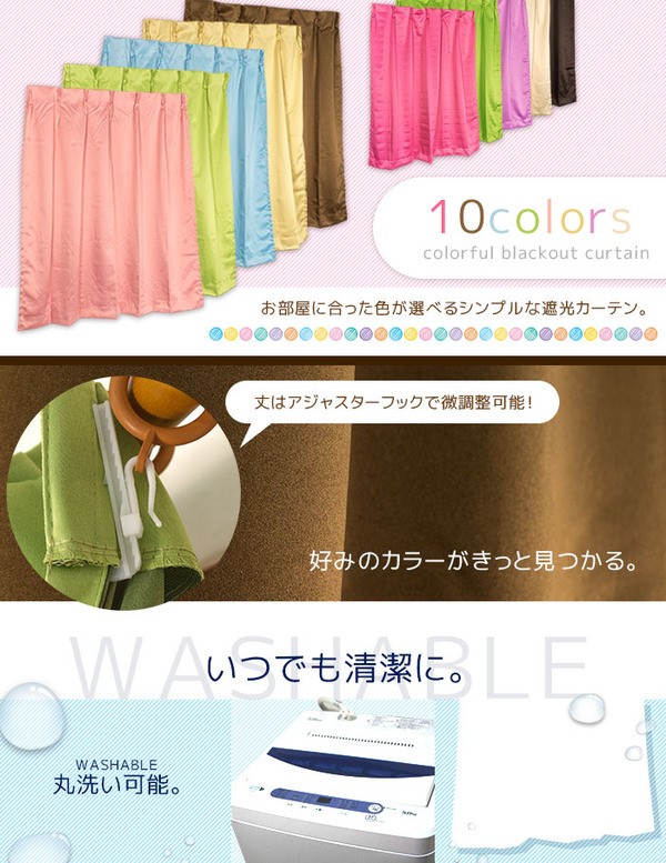 特徴:遮光(等級なし)、ウォッシャブル(洗濯機可)