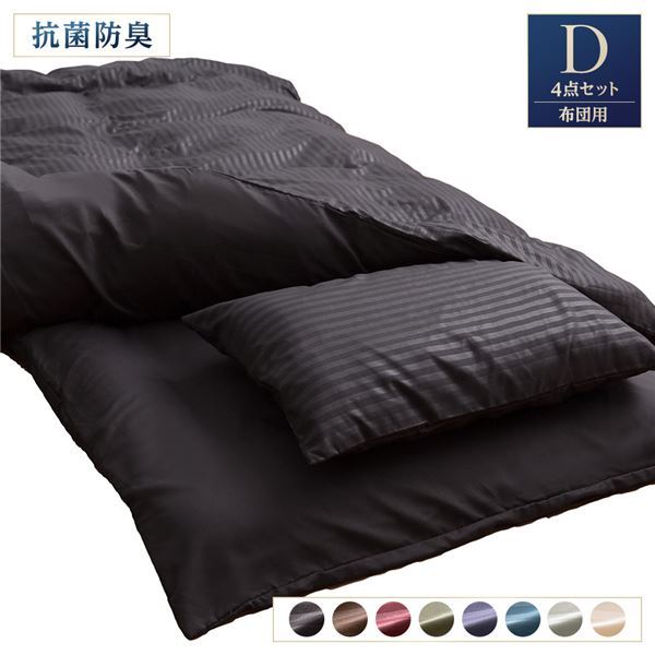 【商品名】 布団カバー 4点組 【ダブル ブラック】 掛け布団カバー 敷布団カバー 枕カバー×2 抗菌防臭 洗える 〔寝室〕 【ジャンル・特徴】 サテン調 ストライプ柄 抗菌 防臭 ウォッシャブル 掛け布団 敷布団 敷き布団カバー ピローケース ピローカバー 枕ケース ベッドルーム 寝室 引っ越し 引越し 引越 転居 新居 新生活 プレゼント 贈り物 贈物 ギフト お祝い バースデー お誕生日 生活用品 日用品 しんぐ かけぶとんかばー かけふとんかばー まくらかばー ぴろーけーす しきぶとんかばー しきふとんかばー