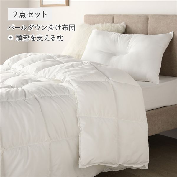 【商品名】 パールダウン 掛け布団 + 頭部を支える 枕 2点セット シングル ホワイト 洗える 掛布団 布団 まくら ピロー マクラ 寝具 【ジャンル・特徴】 あたたか 暖かい ボリューム ピーチスキン なめらか 肌触り 保温性 掛けふとん 掛ふとん 洗濯可能 丸洗い ポリエステル ループ付 ベッドルーム 寝室 インテリア用品 インテリア家具 寝室家具 引っ越し 引越し 引越 新生活 1人暮らし 進学 プレゼント ふとん かけふとん