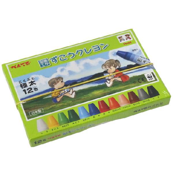 [お名前入れ無し]ぺんてる ずこうクレヨン<極太> 12色セット PTCG1-12 <図面工作利用:小学校1〜6年生> [M便 1/1]