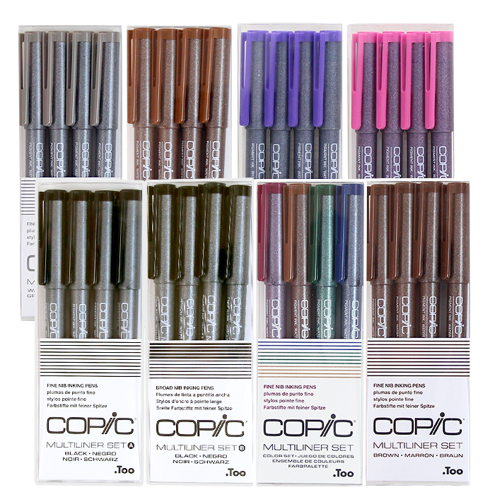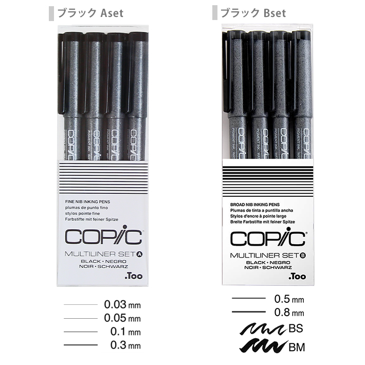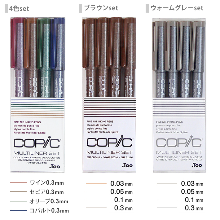 コピック マルチライナー ブラックAセット/Bセット/4色セット/ブラウン/ウォームグレー/ブラウン/ラベンダー/ピンク 4本セット MBA4 [M便 1/4]