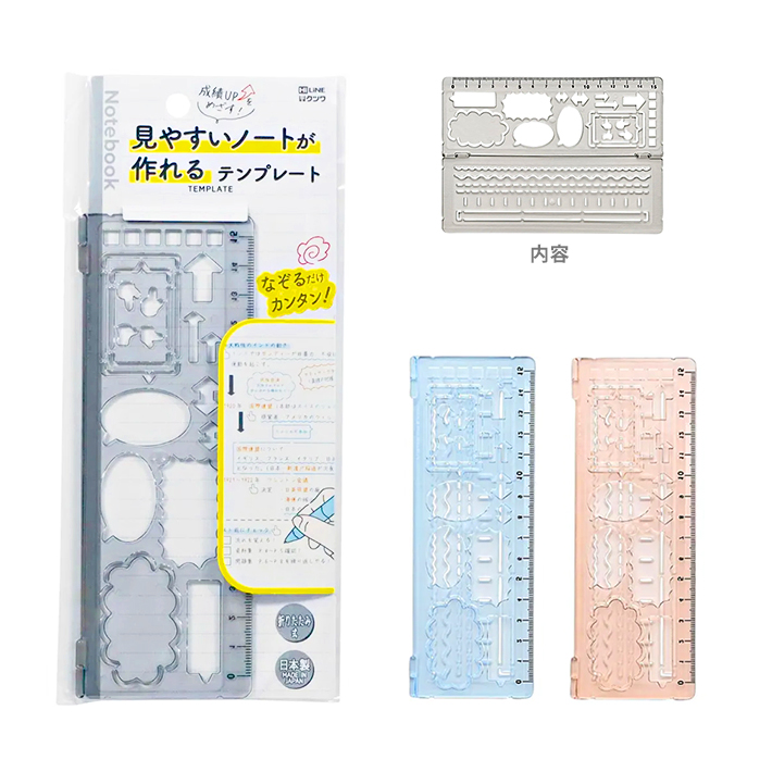クツワ 見やすいノートが作れる テンプレート 折りたたみ式 定規 15cm 3カラー KB043 新入学文具 [M便 1/8]