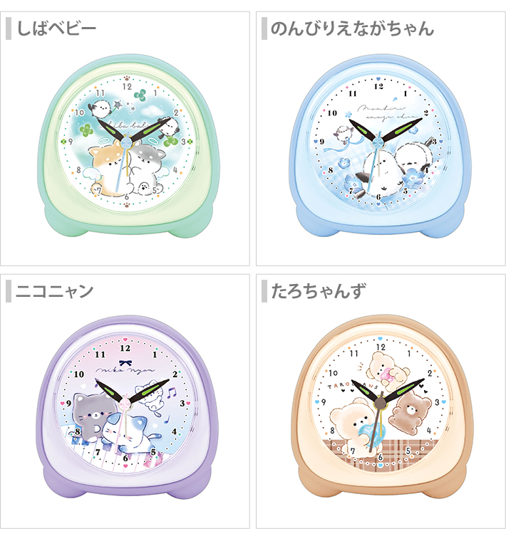 グッズ めざまし ベッド 机 コンパクト クロック インテリア ライト付き おしゃれ かわいい 柴犬 のんびりえながちゃん 猫 ネコ たろちゃんず