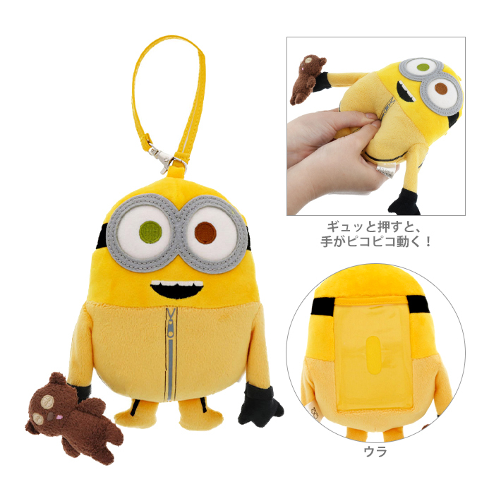 ボディをぎゅっと押すと手がピコピコ動く、かわいいぬいぐるみ仕様のパスケース!