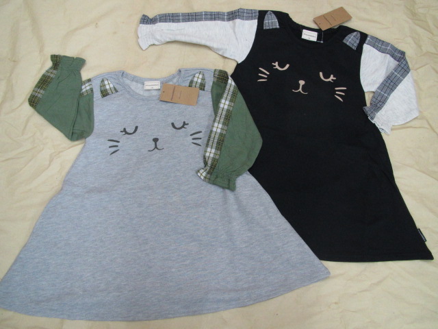 女の子 長袖 ワンピース チュニック 長袖ワンピース ねこ 子供服 ガール ベビー キッズ 80 90 100 110 120 130