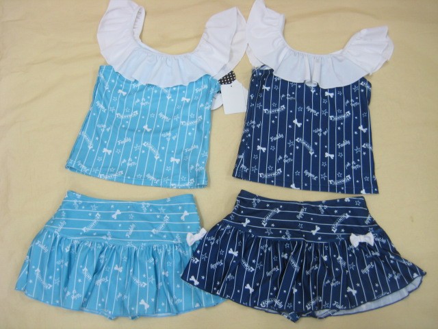 女児ジュニア水着 スイムウェアー ガールジュニア水着 セパレート水着 ストライプ<BR>