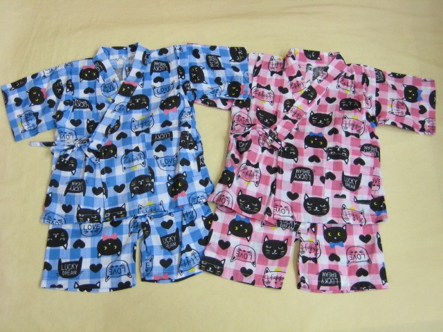 浴衣 甚平 パジャマ 寝巻き 上下セット 女の子 男の子 男子 女子 キッズ ネコ 和柄 2点セット お祭り 綿100% 100 110 120 130