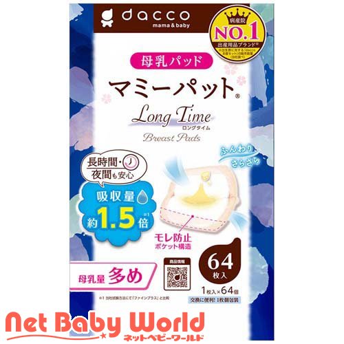 マミーパットロングタイム/その他/【発売元、製造元、輸入元又は販売元】オオサキメディカル/【マミーパットロングタイムの商品詳細】●長時間・夜間も安心の高吸収、ワイドな母乳パッド●吸収量約1.5倍 (メーカー比較方法にて「ファインプラス」と比較)●防水シートをパット内側へ巻き込んだ「ポケット構造」でモレを防ぐ●5本の「端までピタッとテープ」で、パッドをしっかりと固定●衛生的で交換に便利な1枚包装