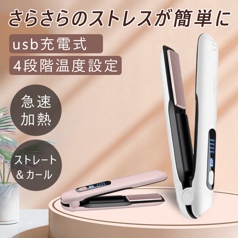 カール&ストレート ヘアアイロン 2WAY ミニ コードレスヘアアイロン カールミニヘアアイロン ワイヤレス ヘアアイロン 5000mAh 大容量 4段階温度設定可能