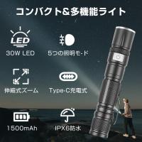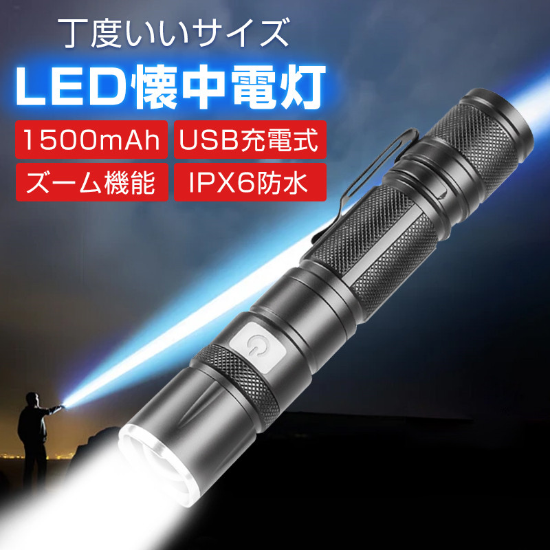 懐中電灯 LED 強力 軍用 ledライト 1200LM 超高輝度 小型 USB充電式 軽量 明るい ハンディライト 防災 停電対策 最強 爆光 停電対策 18650電池1本付き