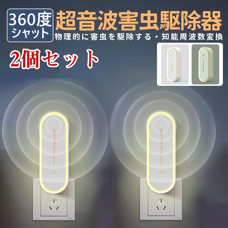 蚊取り 2点セット 虫よけ 小型 超音波害虫駆除器 コンセント式 LEDライト 害虫対策 ネズミ 蚊ゴキブリ 駆除 省エネ 室内 屋外 天井 寝室 玄関 静音 pse認証