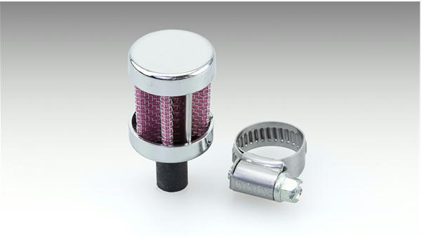 ブリーザーホースのエンドに装着して、オイルなどが飛び散るのを軽減するブリーザーフィルターです。
