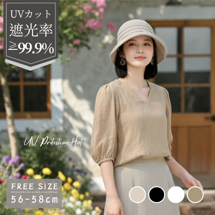 紫外線対策に最適なUVカット帽子の登場です。遮光率99.9%以上で、日焼け防止に効果的。シンプルで上品なデザインは、カジュアルからきれいめコーデまで幅広く合わせやすく、夏のお出かけやレジャーにぴったり。軽やかで通気性の良い素材感が快適な着用感を実現し、ファッション性と機能性を両立しています。