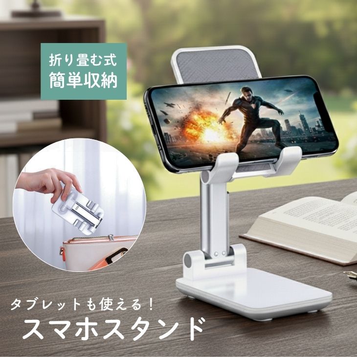 手ぶらで快適にドラマ鑑賞やビデオ視聴が楽しめるスマホ用スタンドです。2段階調節可能な高さと180度の角度調整ができるため、自分の目線にぴったり合わせて使用できます。ダブル軸設計が安定感を高め、しっかり重みのある厚手ベースが揺れを防止してスマホをしっかり支えます。シリコンの滑り止め付きでスマホ本体を傷つけず、滑らず安心して設置できます。折りたたみ可能なコンパクト設計なので持ち運びや収納も便利です。12.9インチまでのスマホやiPadにも対応し、幅広いシーンで活躍します。