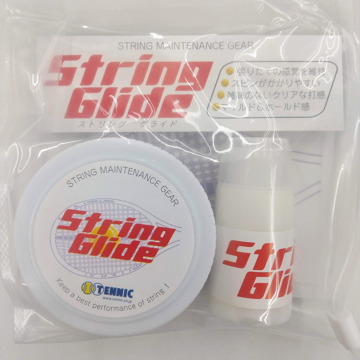 【ストリンググライド】はテニスラケットのストリング面に塗布することで、ストリングの交差点の摩擦を少なくして、ロック状態を解放するストリングメンテナンスギアです。