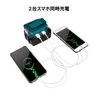 - 2USBポート搭載で2台スマホ同時充電可能。DCポート搭載でマキタファンジャケットの充電も可能。