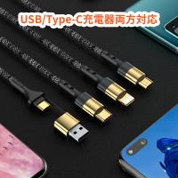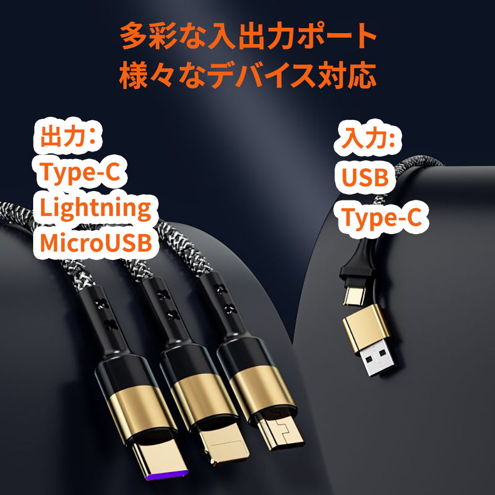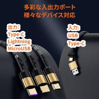 急速充電ケーブル 3in1 2入力端子 3出力端子 100W/5A高速充電 3台同時充電 iphone/type-C/android対応 1.2m