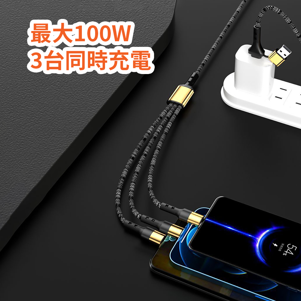 3台同時充電 100W 5A(MAX)高速充電ケーブル