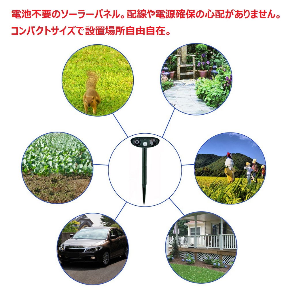 超音波動物撃退器 ソーラー式 野良犬・猫退治 猫よけ ねずみ撃退 鳥追い払う 太陽光充電