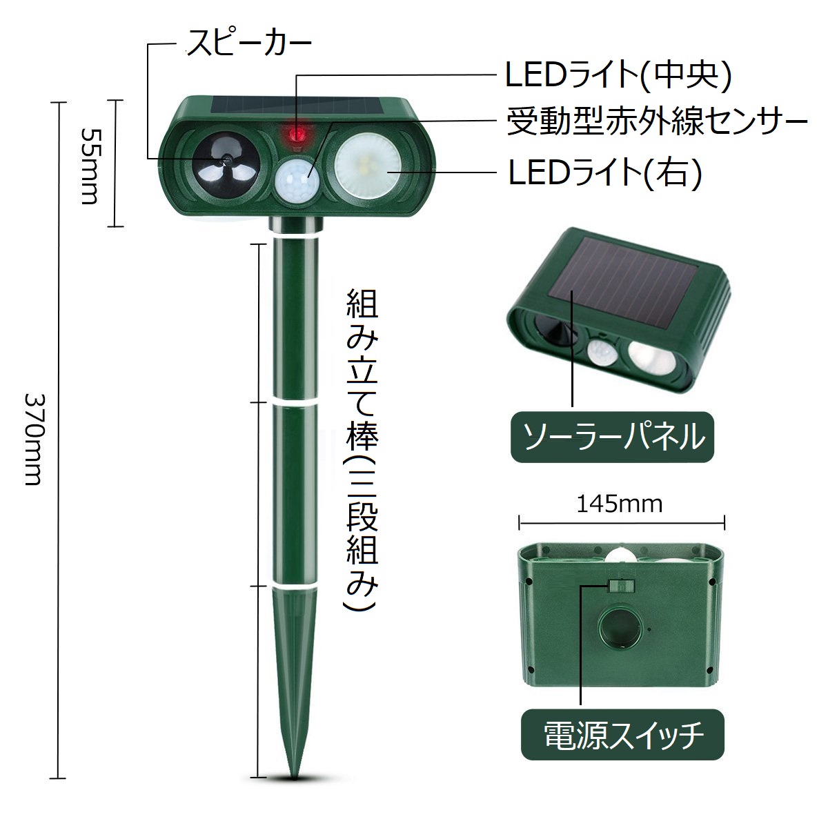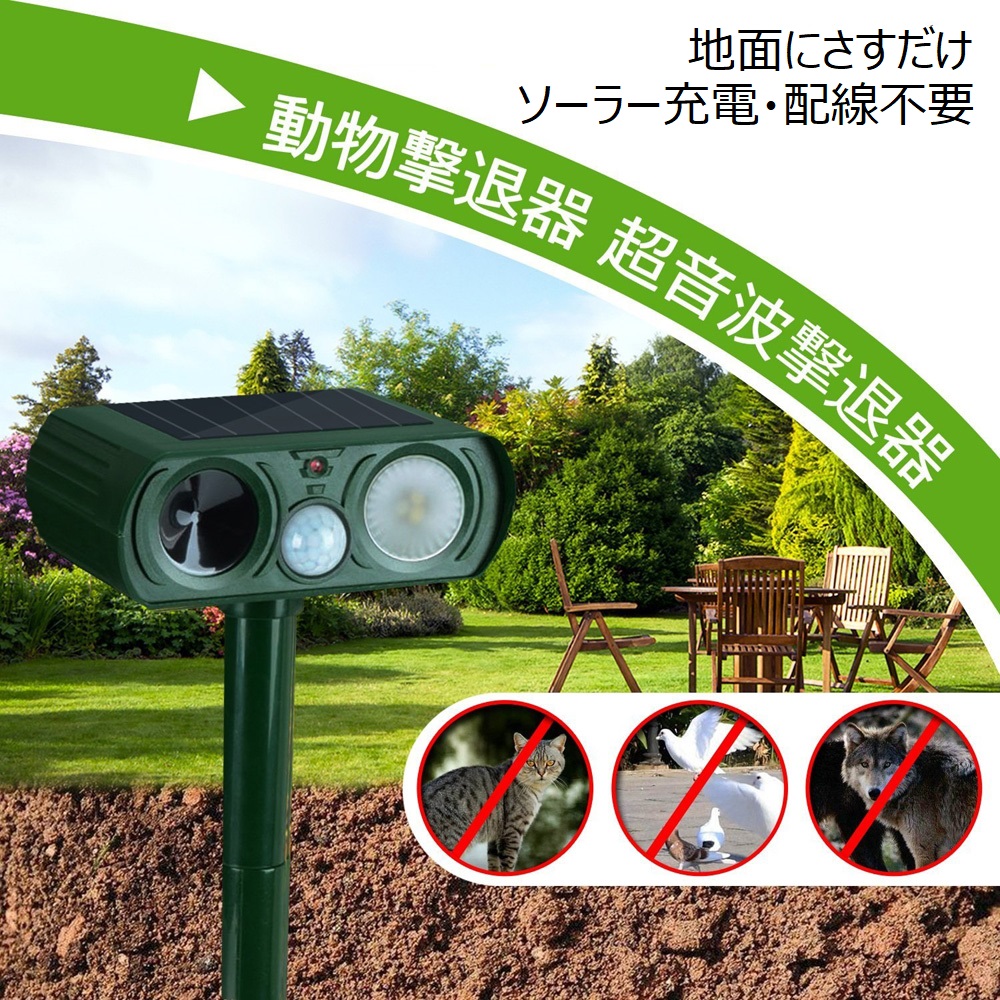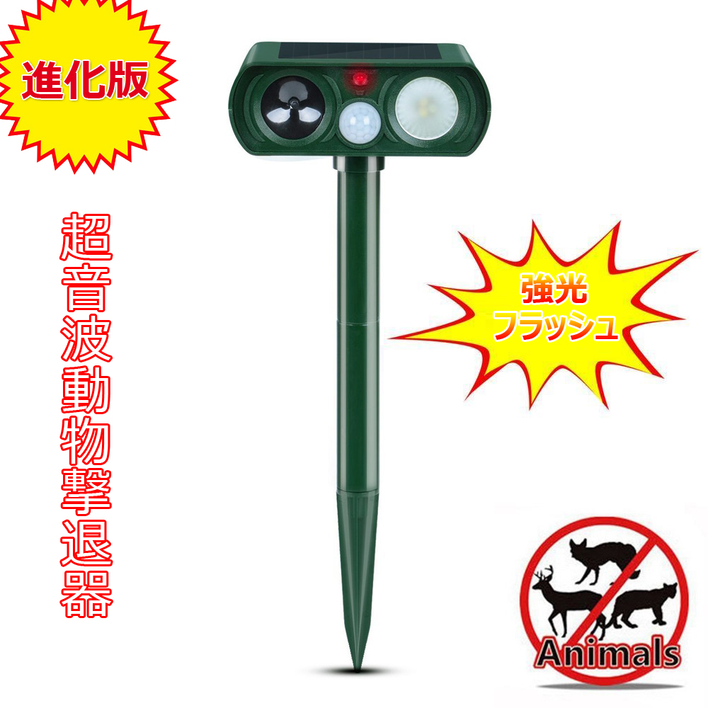 猫よけ 犬よけ 進化版 ソーラー式超音波動物撃退器 強光フラッシュ 駆除効果がより一層パワーアップ!