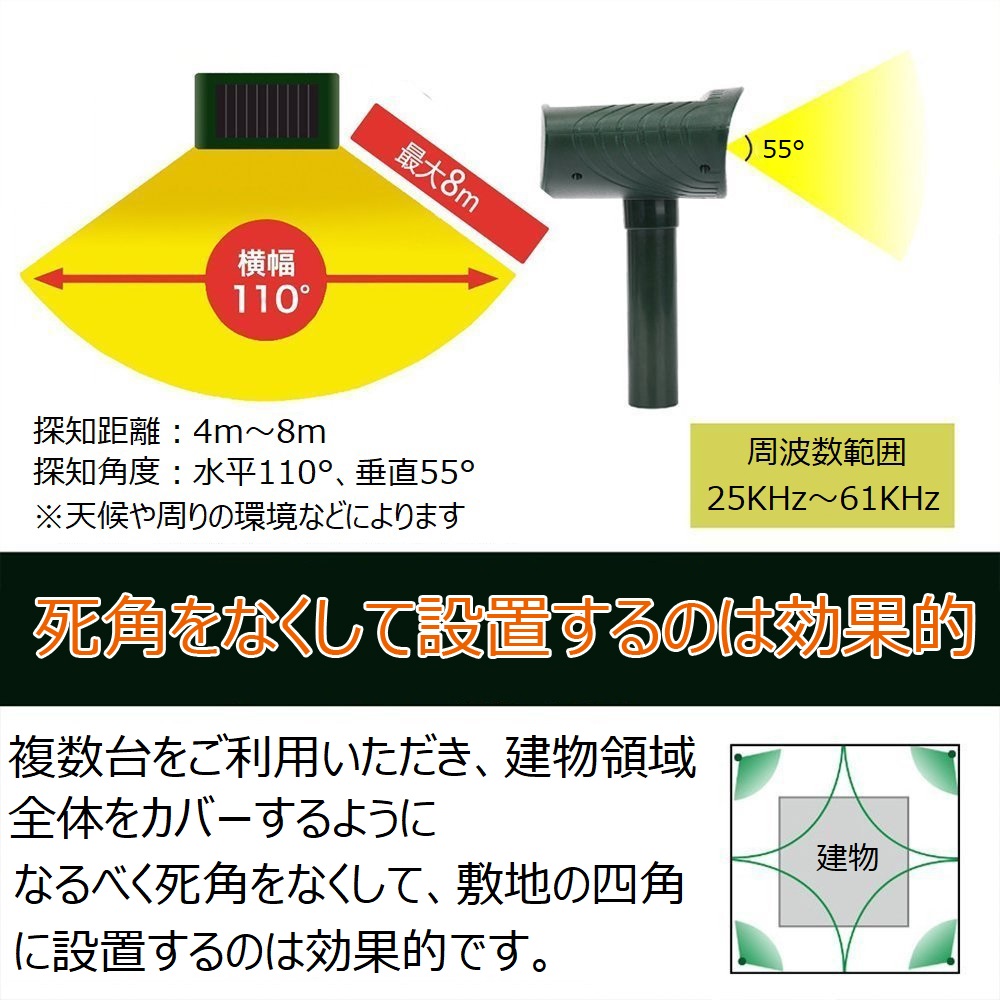 - 超音波なので人体/動物に無害