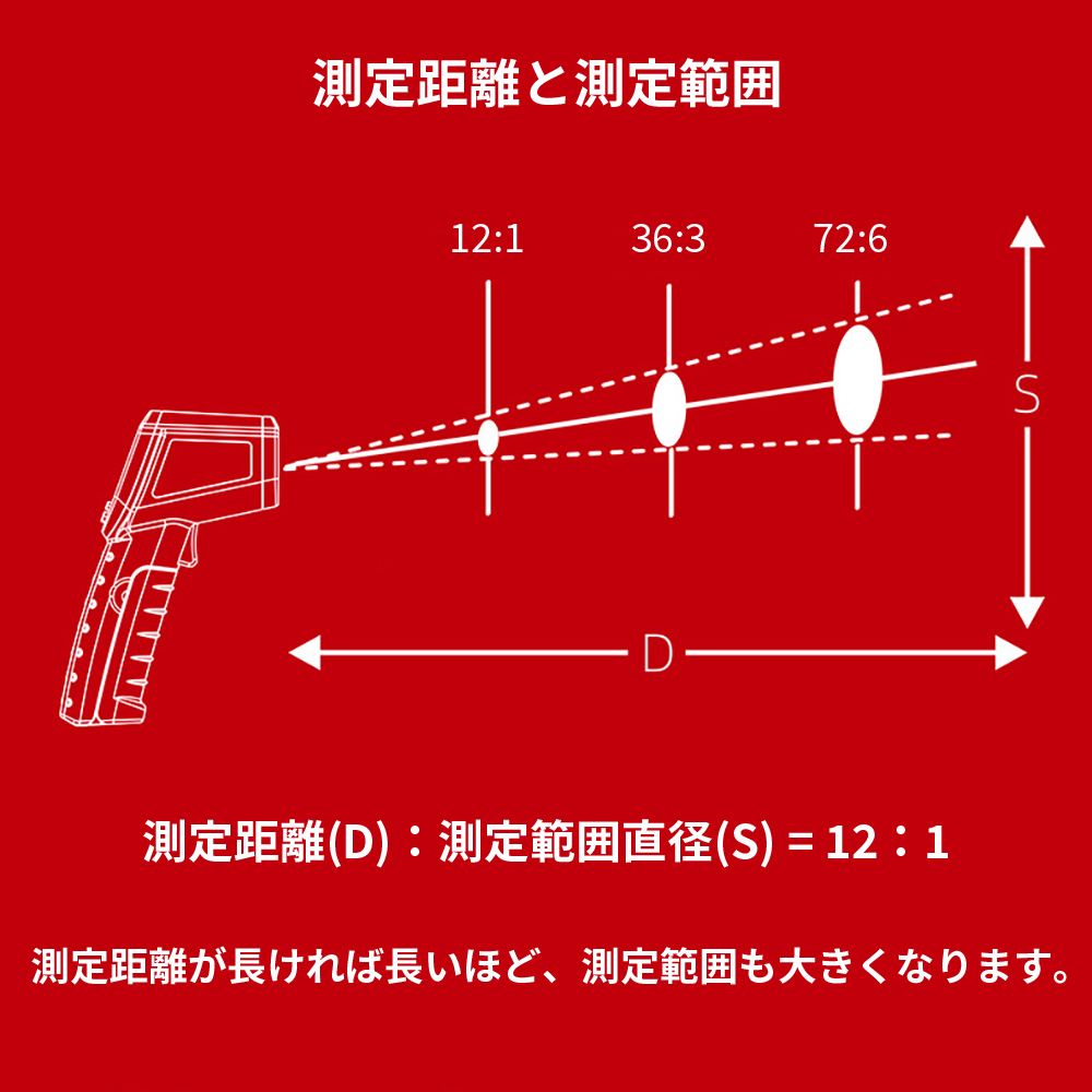 - 測定温度範囲:-50℃〜400℃(華氏-58°F〜752°F)