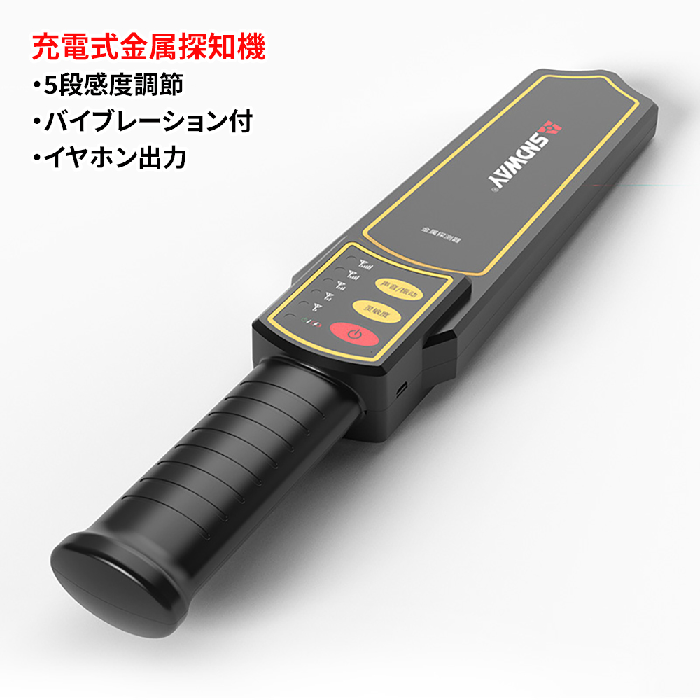 金属探知機 小型ポータブル 充電式 高感度5段階調節 バイブレーション機能付き 1800mAh大容量 長時間動作 イヤホンジャック搭載