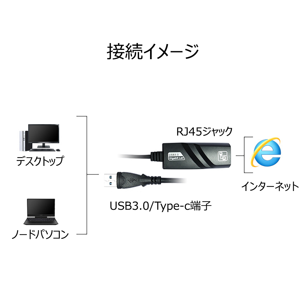USB3.0/Type-C LAN変換アダプター Gigabit 10/100/1000Mbps対応