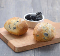 チャバタ生地にブラックオリーブを練りこんだ小型ロールパンです。