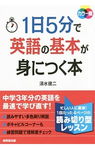 1日5分、1項目ずつ読み進めていくだけで中学英語が復習できるよう、英語の基礎を、豊富な文例とともにわかりやすく解説する。よく使う語彙を掲載したボキャビルコーナー、理解度をチェックできる練習問題も掲載。