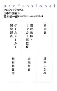 脳科学者・茂木健一郎が独自の視点で各界のプロに切り込む、NHK総合テレビ人気番組を書籍化。6は、樹木医・塚本こなみ、高校教師・サッカー部監督・大滝雅良、ゲームメーカー開発部長・植村比呂志の3名を収録。