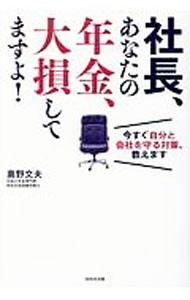 中小企業を襲う「社長・役員の年金ゼロ問題」を警告。年金の基礎知識から、社長・役員を救って、ムダな経費をなくし、会社にお金を残す対策まで、「社長の年金専門家」が具体的かつ簡単に伝授する。