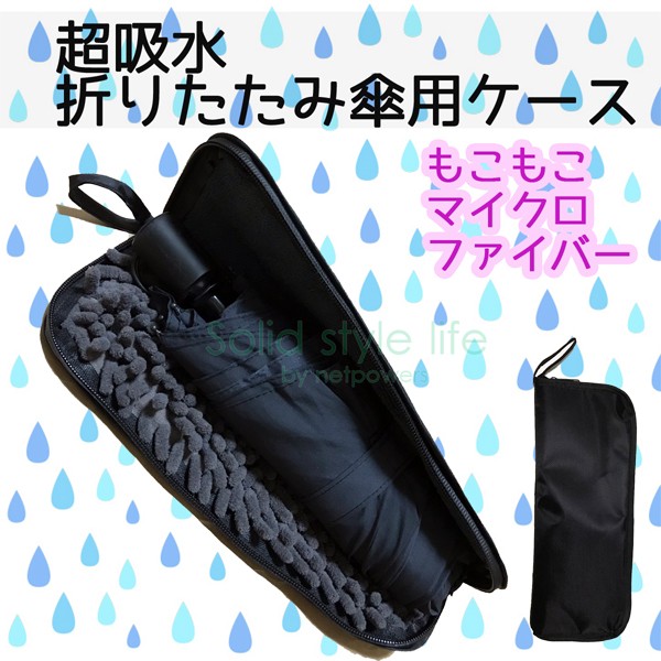 傘のしずくをはらうだけ、濡れたままケースにしまって大丈夫、しっかり吸水してくれます!!
