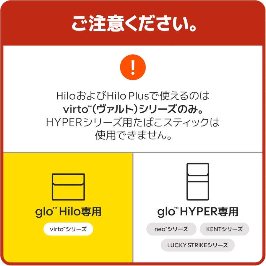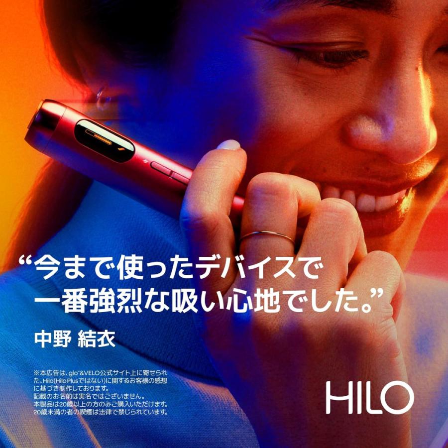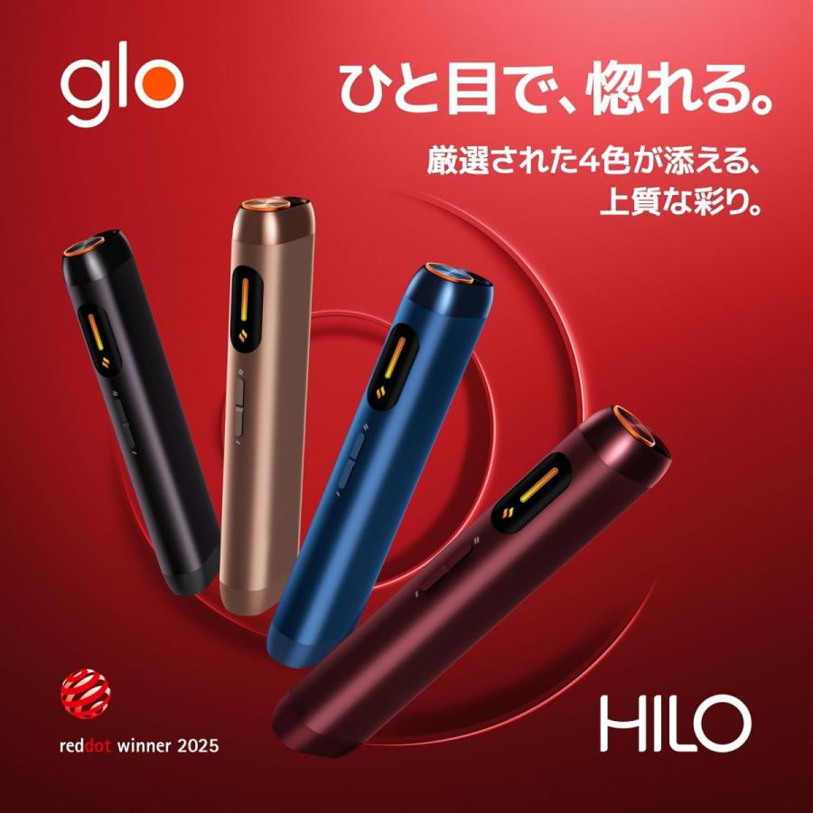 ●glo(TM) Hilo(グロー・ヒーロ) すべてが新しいglo (TM) 。TurboStart (TM)テクノロジーにより、加熱時間わずか5秒。オールインワン仕様。新発売のたばこスティックvirto (TM) シリーズ(別売)のみに対応しています。