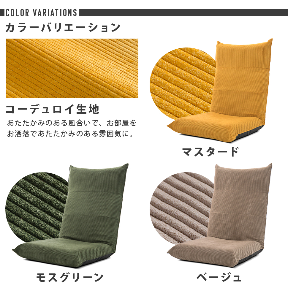 座椅子 おしゃれ ハイバック 腰痛 コンパクト 折りたたみ 日本製 ハイバック座椅子 座いす リクライニング ポケットコイル コーデュロイ ヴィンテージ こたつ