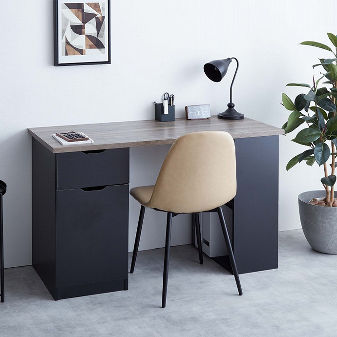 引き出し・開き扉収納・棚の3種類の収納スペースを備えた実用性の高い収納付きデスク