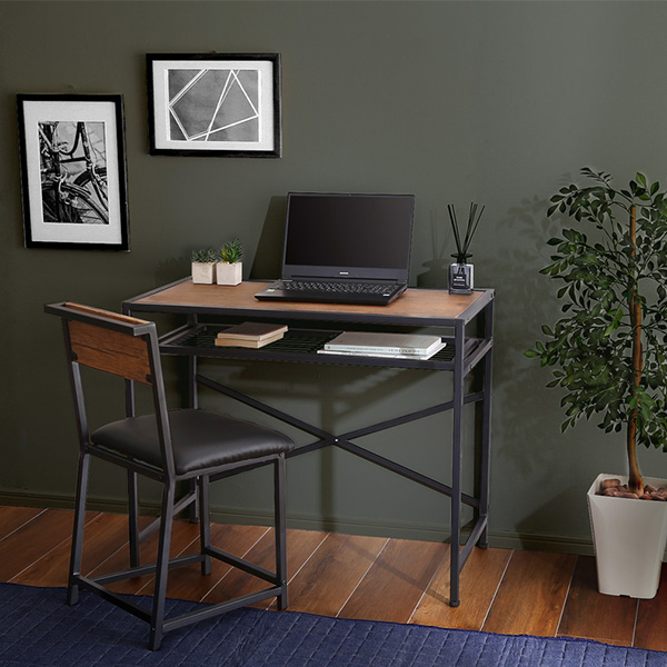 デスク 収納 ヴィンテージ コンパクトデスク チェア 机 幅90 パソコンデスク 平机 机 椅子 セット ウォールナット シャビーオーク