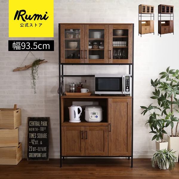 食器棚 収納 おしゃれ スリム 幅93 レンジ台 レンジボード ヴィンテージ キッチン収納 キッチンボード カップボード ウォールナット シャビーオーク