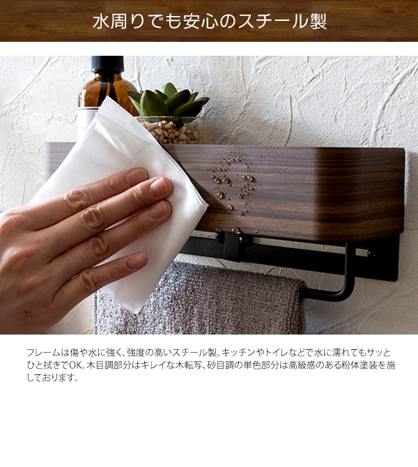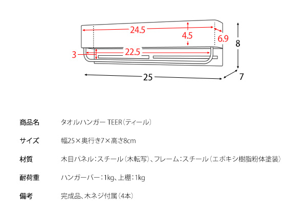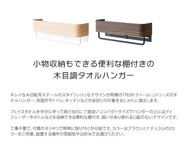 キレイな木目転写スチールのスタイリッシュなデザインが特徴の『TEER(ティール)』シリーズのタオルハンガー。